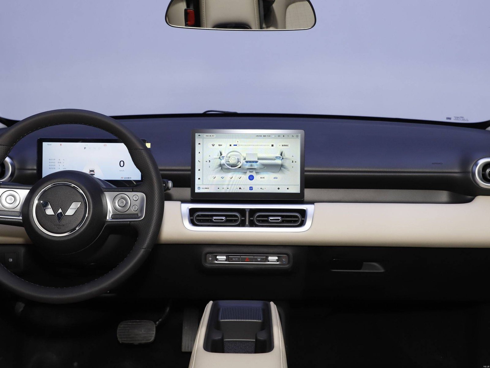 In terms of interior, the Wuling Bingo plus has also been upgraded, canceling the current Bingo’s penetrating dual-link screen, and equipped with full LCD gauges and a center control screen that both use a floating design to strengthen the technological atmosphere inside the car. The double-spoke multifunctional steering wheel is still compact, and with the design of the electronic pocket gear, the whole interior looks more simple, and the suspended center armrest has also improved its practicality, with excellent storage space on both the upper and lower levels.